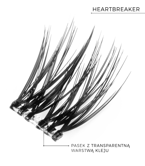 Model Heartbreaker to rzęsy, które przyciągną wzrok i dodadzą zmysłowości każdemu spojrzeniu. Dzięki efektowi mokrych rzęs, pełnych blasku i objętości, Twoje oczy będą wyglądać olśniewająco. Zróżnicowana długość włosków i precyzyjny splot zapewniają idealne ułożenie, które subtelnie podkreśla naturalny kształt oka. Kępki pogłębiają linię rzęs, pozwalając na rezygnację z eyelinera lub na jego dodanie dla jeszcze mocniejszego efektu. Rzęsy Heartbreaker Stick&Go to świetny wybór na wyjątkowe okazje, który sprawdzi się również w codziennym makijażu. Dzięki temu, że włoski osadzone są na pasku z warstwą kleju=rzęsy dają niezrównaną wygodę aplikacji.